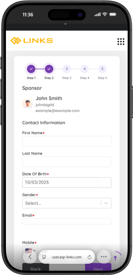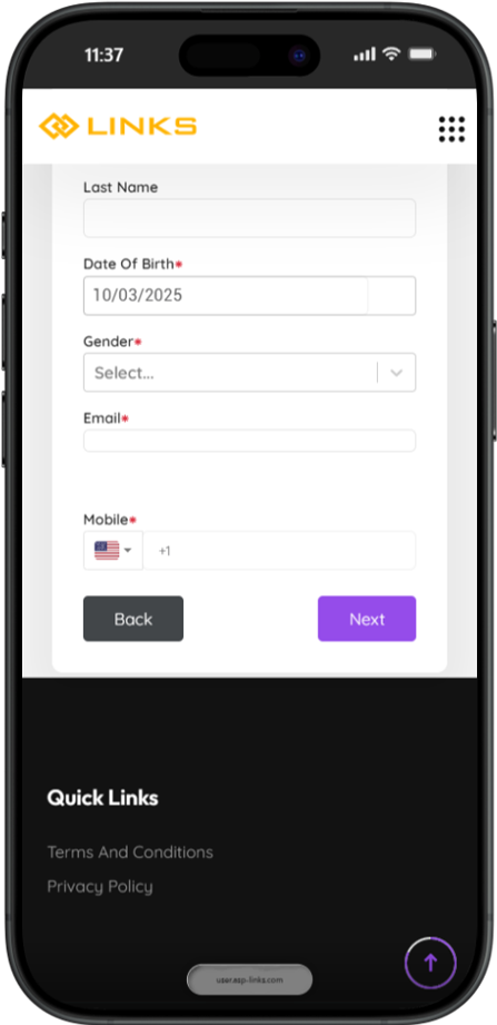 Please enter your name, date of birth, gender, email address, and phone number.