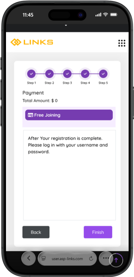 Click “Finish” to complete your registration.